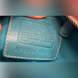 Perfect springtime bag with bright spring colors and light brown leather trim. Canvas straps accented w/ teal leather. Beautiful teal fabric interior. 12" x 6" x 3.5" (estimate).