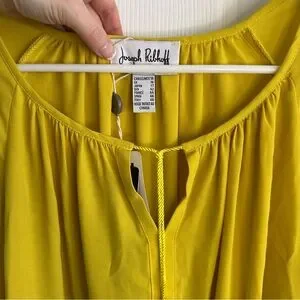 Joseph Ribkoff Flowy Yellow Blouse with Embroidered Sleeves