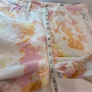 Make a bold and stylish statement with these high-rise skinny ankle jeans by Style & Co. With a flattering cut and eye-catching pink/yellow tie-dye pattern, these jeans are perfect for spring and summer flair.