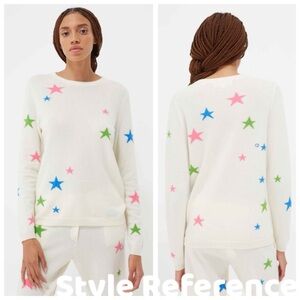 A scattered star pattern accents this slouchy, crewneck luxury sweater.