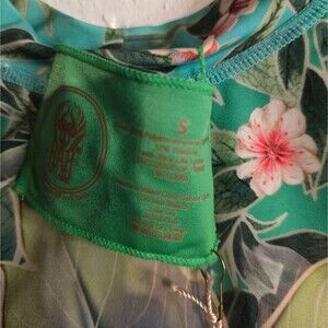 Vibrant floral crop top featuring bold pink flowers and lush green leaves. Perfect for a sunny day.
