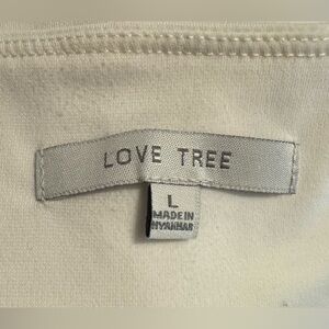 This is a gently worn White Love Tree spaghetti strap tank top in a size L. Super soft! 95% polyester & 5% spandex. Non-smoking home. Willing to bundle! Make me an offer!