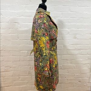 Rino & Pelle - Army Green with Bright Floral Trench Coat with Wrap Front