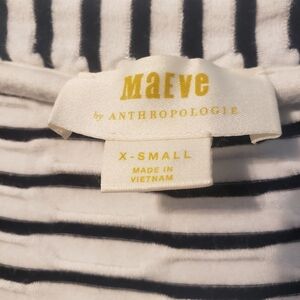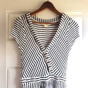 Maeve Anthropologie midi black and white dress. V-neck with buttons and Tulip hem opening.