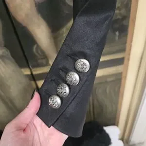 The jacket is a size small. New with tags and comes with an extra button.