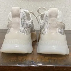 steve madden girl’s rhinestone sneaker tennis shoe athletic tan beige size 1