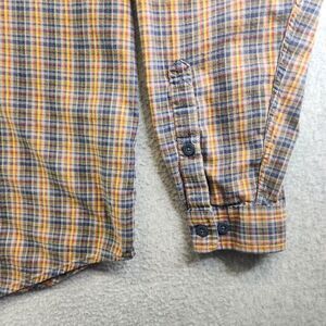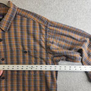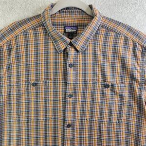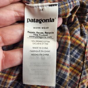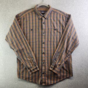 Patagonia Shirt Mens L Yellow Plaid Organic Cotton Flannel Pockets Outdoor Cabin