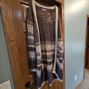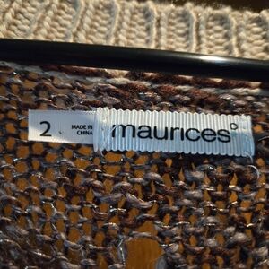 Maurices, Women's size 2X, Cozy knit sweater with open front. Features brown and cream stripes. Perfect for layering.