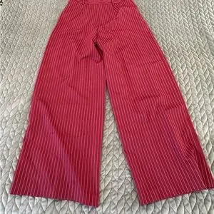 New Without Tags. (Washed but never worn.) Experience effortless elegance with these Commense wide-leg pants in a striking burgundy hue. Crafted from a lightweight fabric, they offer a flowing silhouette that drapes beautifully from the hips to the floor. Perfect for making a bold statement, these pants are a versatile addition to any wardrobe.