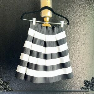 Chic and stylish black and white striped skirt. Perfect for any occasion.