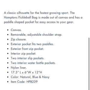 NWT Ame & Lulu Hamptons Pickleball Bag