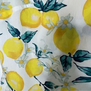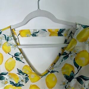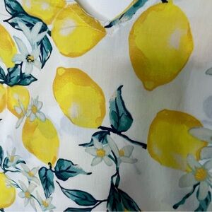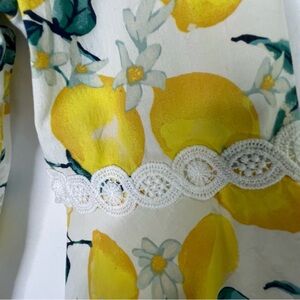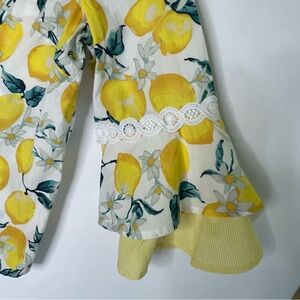 Vibrant yellow lemons with ruffled sleeves and lace- adorable top!