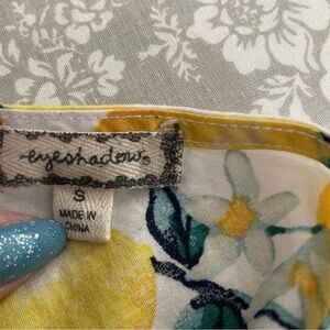 Eye Shadow Lemon Print V-Neck Cotton Blouse Ruffles S