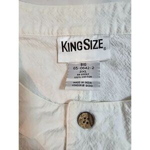 King Size Mens Big Size 3XL White 100% Cotton Henley Shirt W/ Pocket