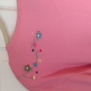 Vintage Koret Francisca Women's Size Large Flower Embroidered Cardigan Pink