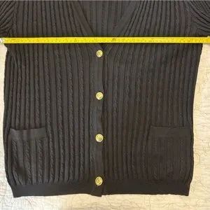 Beautiful vintage 100% wool black Celine cardigan. Made in Italy. Gold buttons with extra button included (sewn into inside pocket). In excellent vintage condition and freshly dry cleaned.
