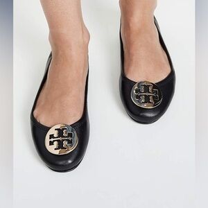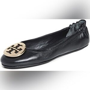 Tory Burch Women's black leather Minnie Travel Ballet Flats Size 41