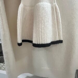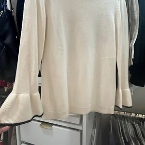 This cream sweater from Veronica Beard features a cozy cowl neck design, offering both warmth and style. Its soft knit texture and relaxed fit make it a versatile addition to any wardrobe, perfect for layering during cooler months.