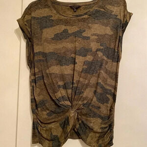 Lucky Brand Army Green Camo Twist Front Tee Shirt rRolled Sleeve Women Size S/P (Small Petite)