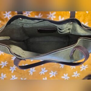 Almost Perfect Large zippered tote bag in Kiwi. Almost perfect leather is the lowest price on all of PLG's best selling leather goods! Our artisans have very high standards. Sometimes we come across hides with more natural character marks. Other times we notice a small imperfection on a finished product such as a slight color variation or a messy stitch or two.