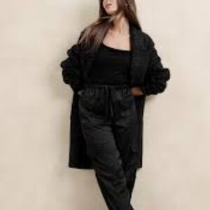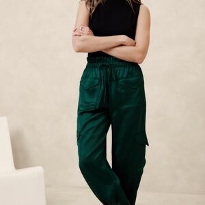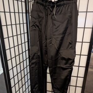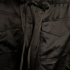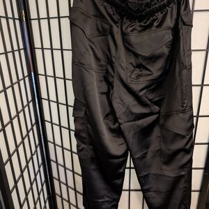 Stylish and versatile Satin 🖤 Black black cargo pants for women. Perfect for casual outings or a chic look. Comfortable fit with a modern design.