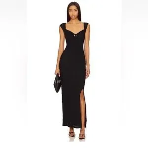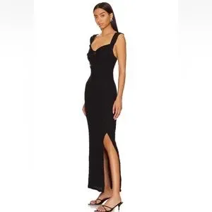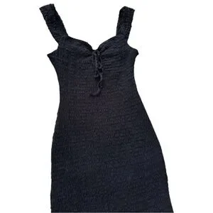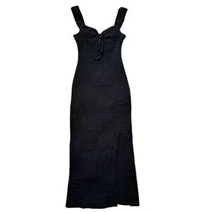 Free People Eleni Bodycon Maxi Dress Size M Black Smocked Side Slit
