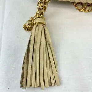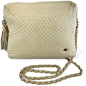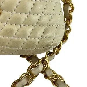 Bally Lambskin Leather Quilted Crossbody Bag with Gold Tone Chain in Cream