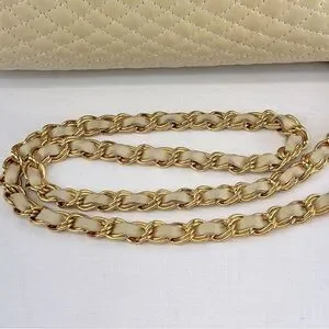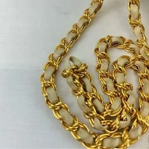 Gorgeous shoulder strap -leather woven into a gold-tone link chain