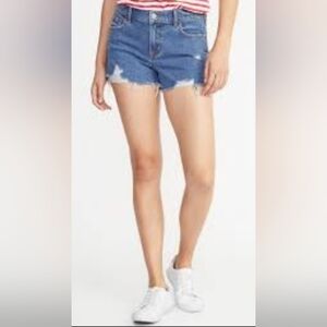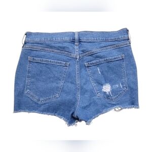 Midrise Boyfriend Blue Jean Shorts with Raw Hem and Distressed Look