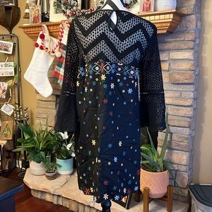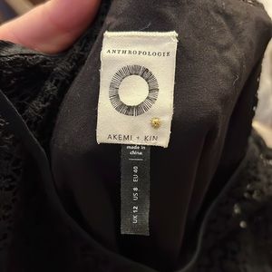 Akemi + Kin Anthropologie Black Maud Embroidered Crochet Floral Shift Dress.