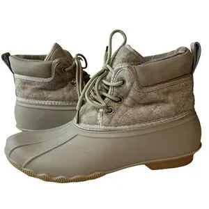 Gypsy Jazz Quack Duck Boots Womens 8 Cream Ankle Black Rubber Lace Up