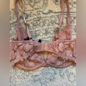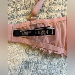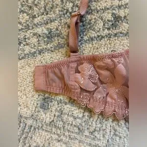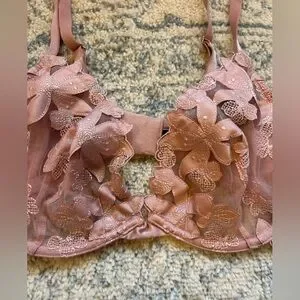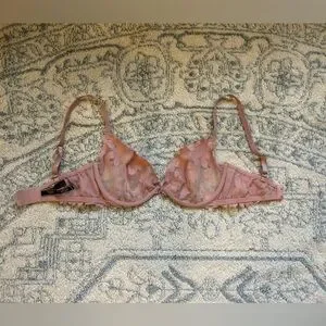 Victoria’s Secret Floral Unlined Deep Plunge Underwire Bra Pale Pink size 34 DD