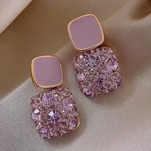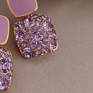 Add a touch of elegance with these stunning gold and purple crystal earrings. Perfect for any occasion.