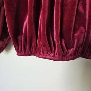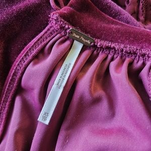 Free People Dream Team respberry color lace sleeves velvet blouse Size XS