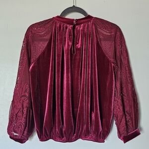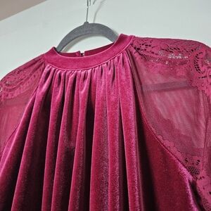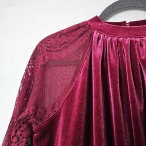 Free People Dream Team respberry color lace sleeves velvet blouse