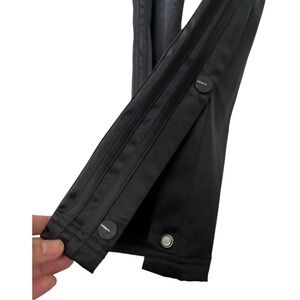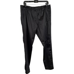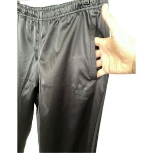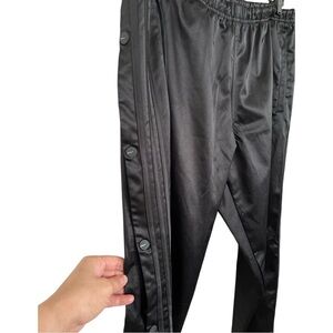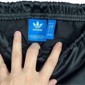 Pristine condition. No snags, tears, rips, or stains. All snaps work and have the Adidas name printed. Satiny fabric with black on black logo and stripes.
