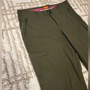 Women’s Merrill hiking pants like new condition size 8, Olive color, cool stitching and pockets throughout … don’t mind the fuzz from my carpet 🙄. They have no wear whatsoever.