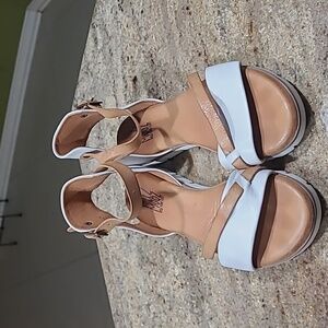 Miz Mooz Shep White, Tan Leather Strap Sandals Size EU38 / US 7.5