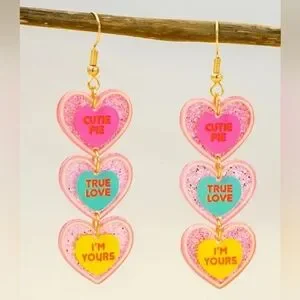 Elegant Triple Heart Dangle Earrings - 1 Pair with "TRUE LOVE" & "I'M YOURS" Ins