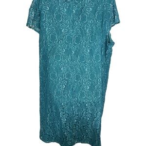 Catherines Shift Lace Dress Teal 34W Women Short Sleeve