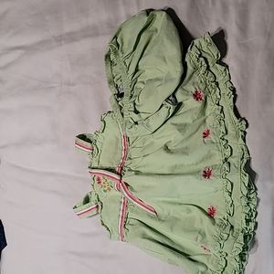 -white dress with embroidery in pink and lavender- unknown brand with faint stains