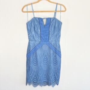 Harlyn Scallop Hem Lace Cocktail Sheath Bodycon Periwinkle Blue Dress Small