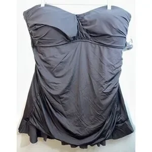 A.N.A A New Approach HALTER Shirred ONE-piece Swimdress BLACK Plus Size 24 NWOT