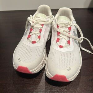 On Running Cloudmonster Women's White and Pink Running Shoes