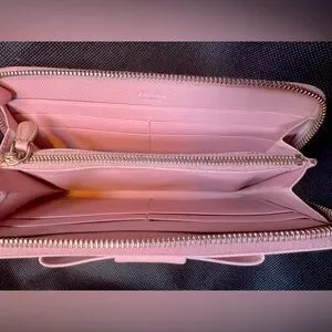 Prada bow wallet Prada saffiano zip Prada zip around wallet pink Prada wallet vintage Prada collectible Prada long wallet designer pink wallet Prada Italy authentic Prada rare Prada leather wallet continental zip wallet Prada saffiano leather blush pink wallet Prada wallet soft pink Prada zip organizer saffiano Prada wallet with bow Prada feminine wallet Prada statement wallet