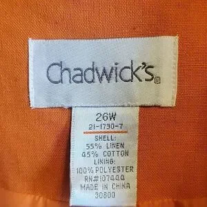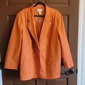 Chadwick's-Linen/Cotton orange, collared, long sleeved Blazer 26W. NWT.
