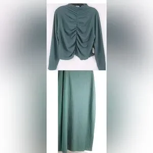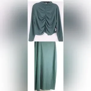 NWT Lot of 2x [Almost Famous] Green Ruched Top & Maxi Skirt, Women’s Plus 2X, 3X