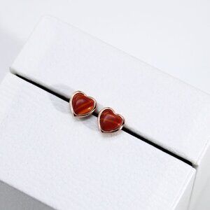Pandora Red Murano Glass Heart Stud Earrings S925 Sterling Silver with box