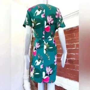 Aritzia Babaton Wallace Dress Emerald Floral Wrap Dress Tropical Knee Length