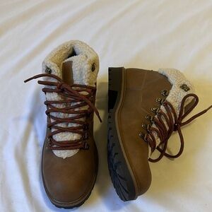 Sun + Stone Men's Glenn Faux-Leather Fleece-Trimmed Lace-up Boots tan size 9